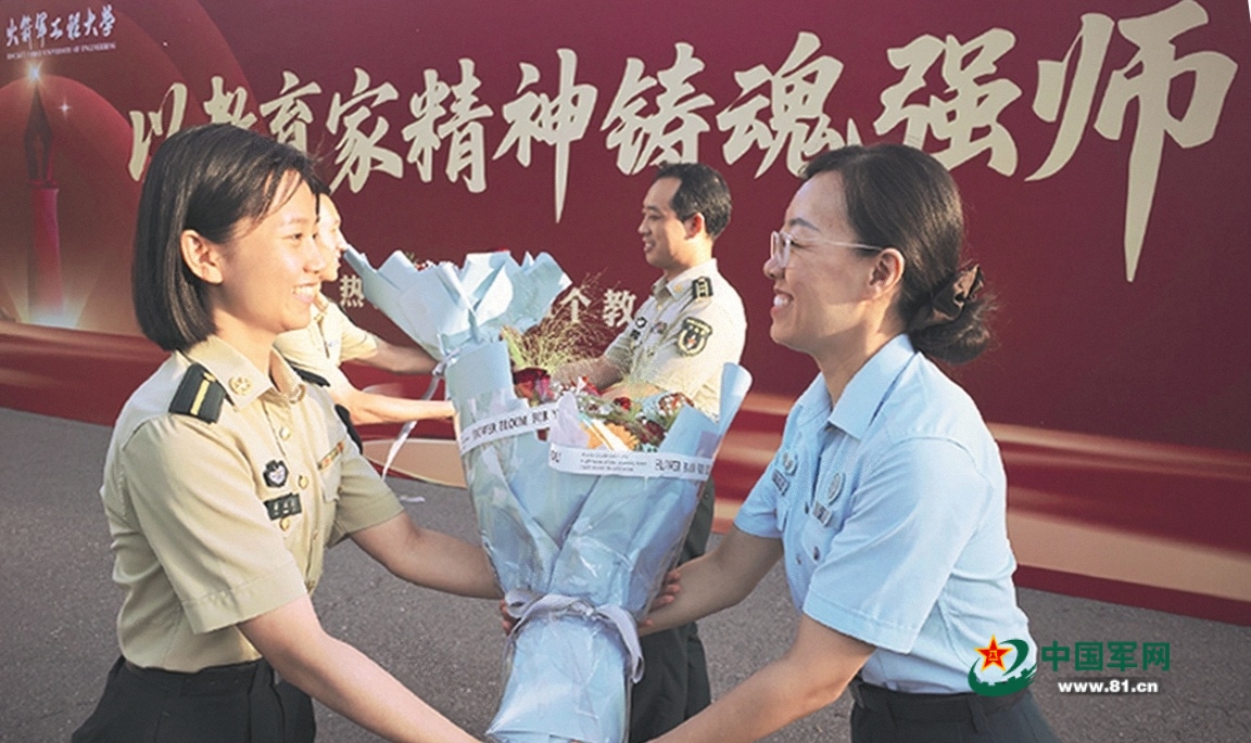 火箭軍工程年夜學學員為教員奉上鮮花。束縛軍報特約記者 鐘福明攝